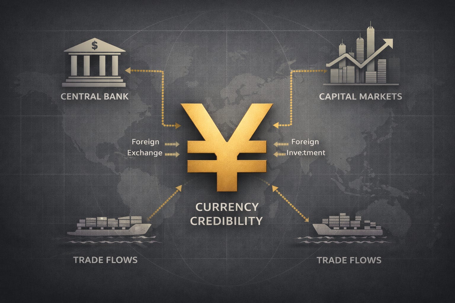The emphasis places currency credibility downstream of governance, pricing power, and capital attraction rather than exchange rate policy alone.