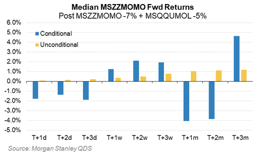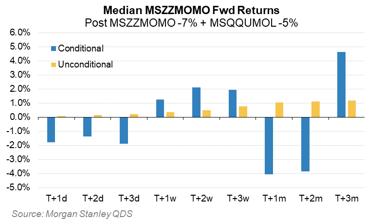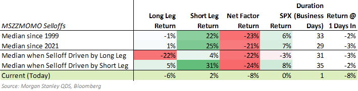 Today’s market saw a big, one-sided drop in the Morgan Stanley Long/Short Momentum pair (MSZZZMOMO) — it fell 7.7% in a single day.