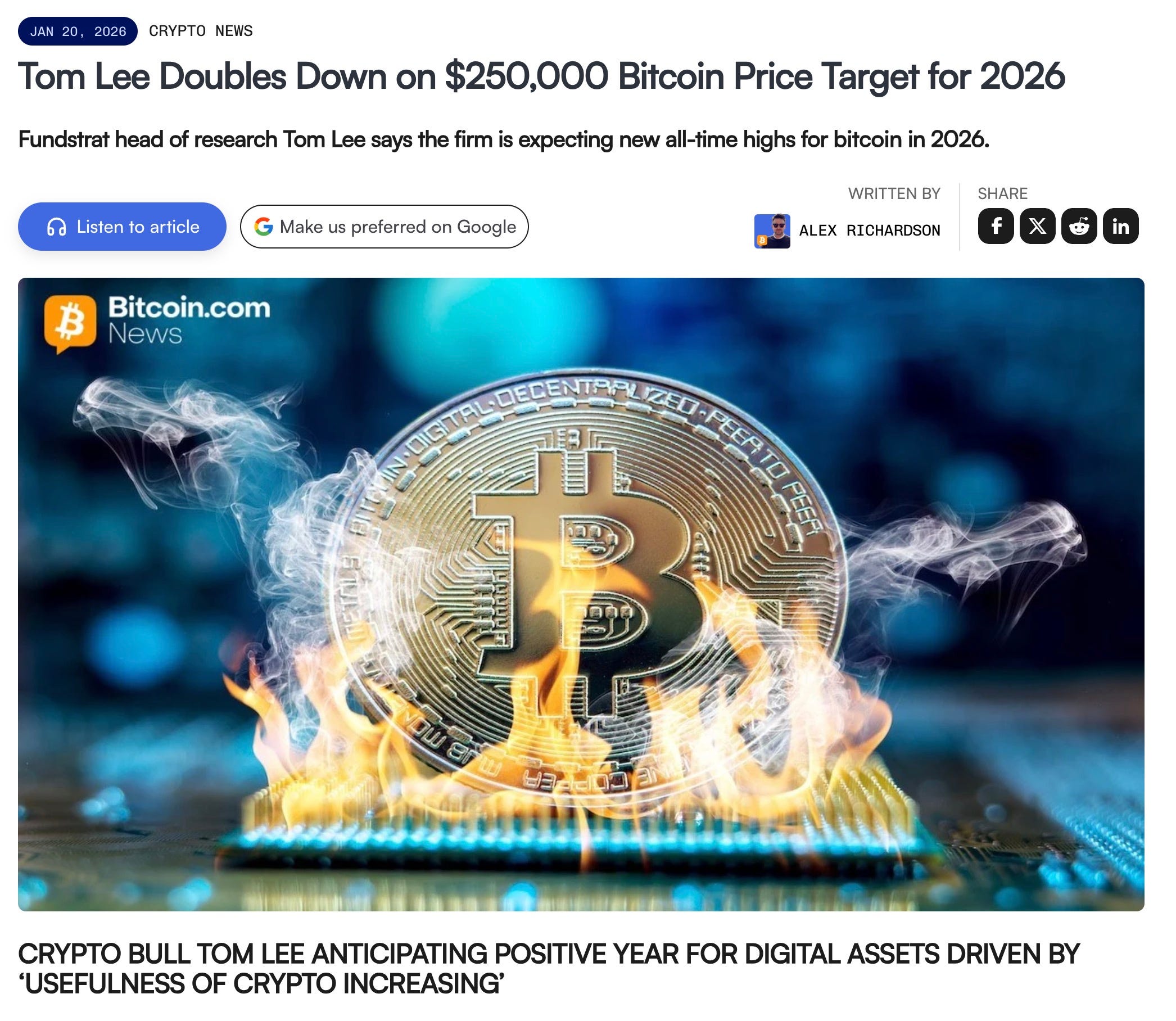 You may have noticed that every few hours, like a recurring rash, Tom Lee reappears on CNBC to announce that Bitcoin is about to explode into the financial stratosphere.
