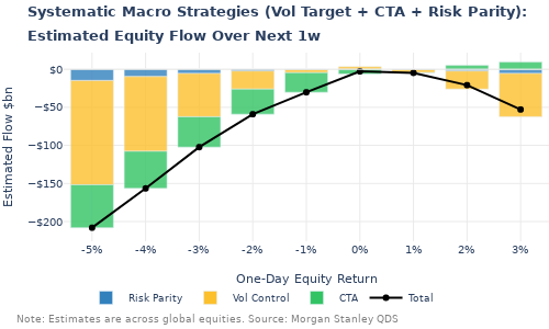 Systematic strategies (CTAs/trend-followers, volatility control, risk parity) reduced leverage to 64th percentile over 5 years—NDX weakness triggered CTA selling (~$10bn global equity supply expected next week unless markets stabilize).