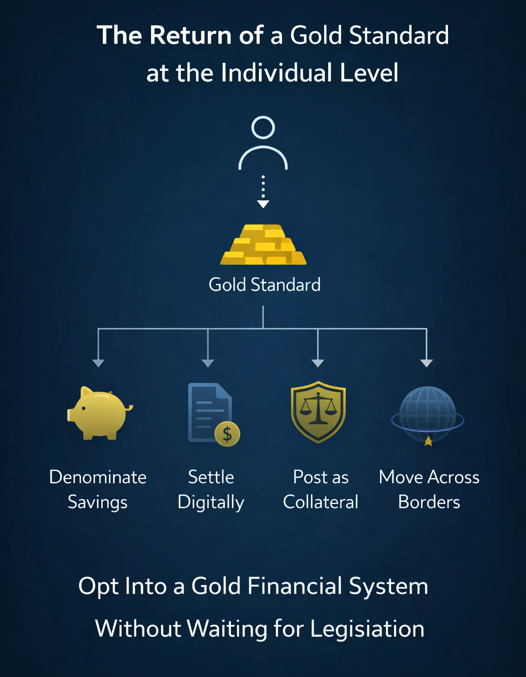In effect, you can opt into a gold-referenced financial system without waiting for legislation.