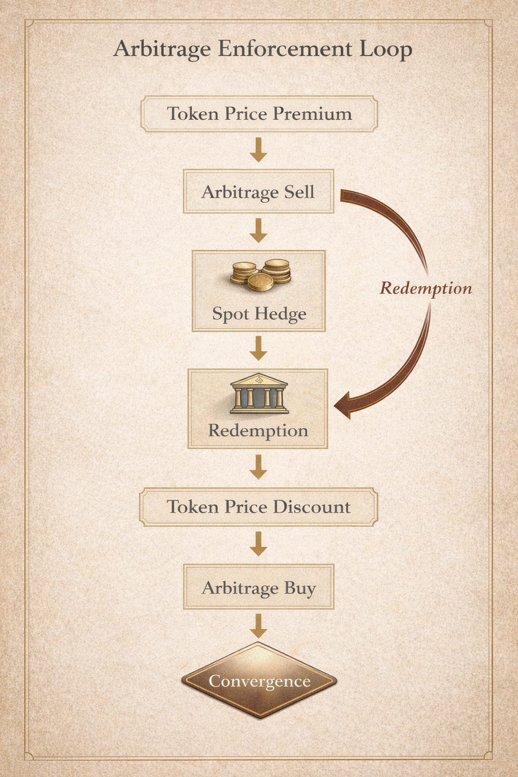 Temporary deviations occur, particularly during thin liquidity windows, yet they mean-revert. Arbitrage and redemption channels enforce discipline. When token prices trade above spot, market participants mint and sell. When below, they buy and redeem.