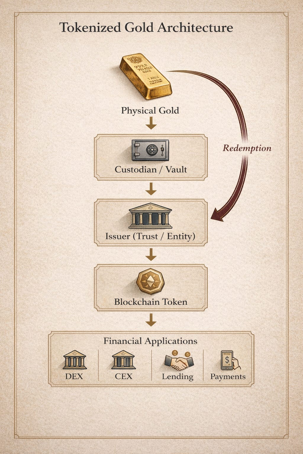 The trust structure varies across issuers. PAXG operates under a regulated trust framework with allocated bar-level ownership. XAUt relies on pooled claims governed by contractual redemption and custody arrangements. Both designs remain fundamentally trust-based. Blockchain ensures transferability; it does not eliminate reliance on vaults, audits, and legal enforceability.