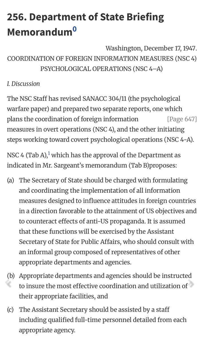 The Cold War was the forge in which modern cognitive and influence warfare doctrine was hammered into shape. By 1947, U.S. policymakers, alarmed at the electoral strength of Communist parties in France and Italy, achieved bipartisan consensus that America had to beat the Soviet Union at its own psychological game, even if that meant, as one historian put it, using “subterfuge or state-run media or something stronger.” The first CIA document authorizing psychological operations, NSC 4-A, was so broad it didn’t even define the term — it simply authorized any activities designed to “counteract Soviet and Soviet-inspired activities.”