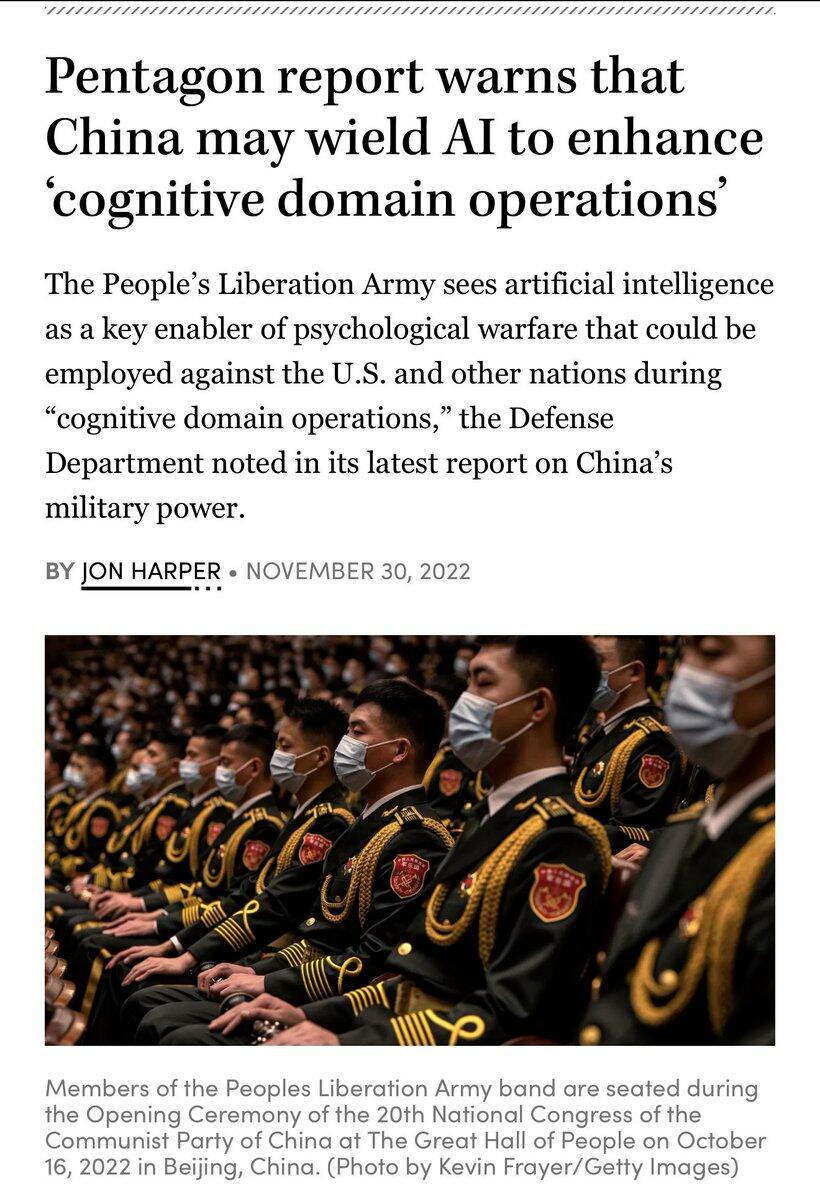 China’s People’s Liberation Army has developed what it calls Cognitive Domain Operations (CDO), the systematic targeting of human perception, trust, and decision-making to “win without fighting.” PLA strategists increasingly view the human brain as the decisive battlespace of the 21st century. Japan’s National Institute for Defense Studies (NIDS) documented how China blends cognitive warfare with cyber operations, economic coercion, and military intimidation in the “gray zone”, the space between peace and declared war. RAND and the National Defense University have tracked PLA exploration of neuroscience, brain science, AI, and data analytics specifically to enhance psychological warfare effects.