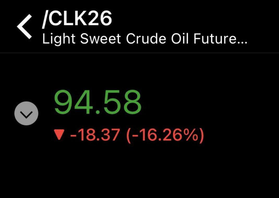 We ended up getting a two-week ceasefire after the close on Tuesday, and oil futures dropped like a rock after hours.