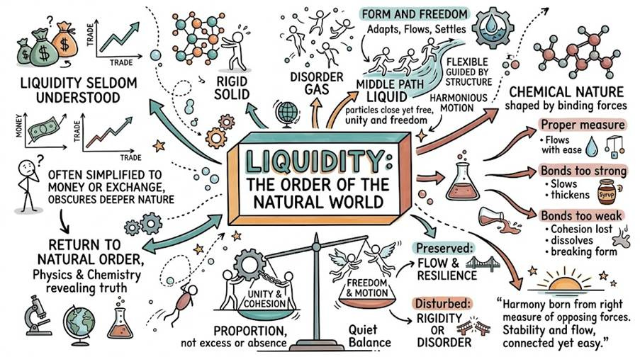 Liquidity is often spoken of yet seldom understood. In both science and finance, it is too easily reduced to the presence of money or the ease of exchange. Such simplifications obscure its deeper nature. To grasp its meaning, one must step away from markets and return to the order of the natural world, where liquidity first reveals itself through the principles of physics and chemistry.