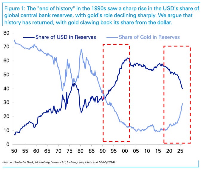 The reserves baton is passing back to gold from the dollar