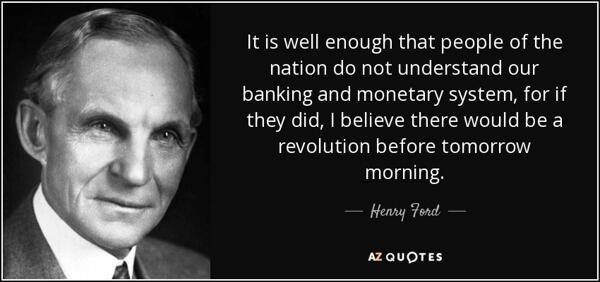 Henry Ford once astutely observed that a revolution would occur overnight if people truly understood the banking and monetary system.