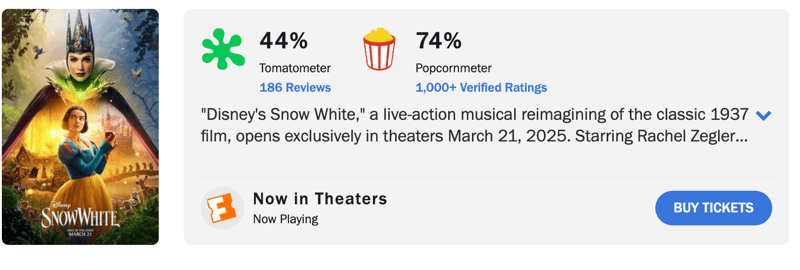 Snow White is currently rated one of the worst movies of all time on IMDB sitting at a 2.2/10. 😂