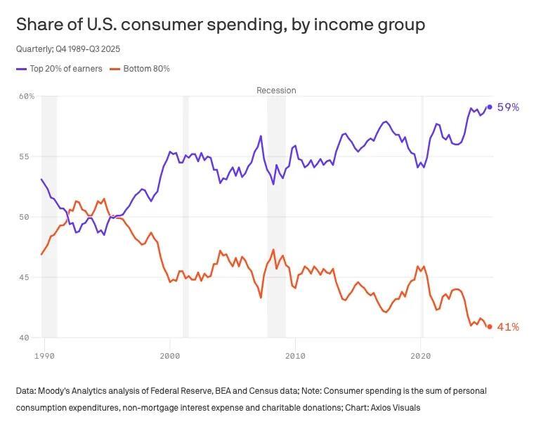 That said, treating subgroups as living in different economies is not as outlandish as you might think. There are multiple consumer price indexes, including an experimental one that tracks how prices change for the elderly. In a K-Shaped economy, we need different measurements beyond aggregate statistics for consumer spending and growth, or just looking at different wealth and income amounts. We need to know about spending inequality as well.