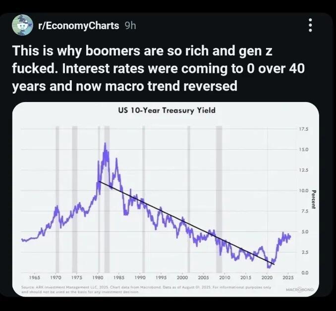 The math quietly stopped working. Boomers bought homes for two or three times their annual income during an era when interest rates would fall for the next four decades—turning their mortgages into wealth-building machines as rates dropped from 15% to near-zero. Today's buyers face five to six times their income—or more in major cities—while rates can only go up from historic lows. Where Boomers rode a 40-year tailwind of falling borrowing costs that inflated their assets while deflated their debt, current generations face headwinds at every turn. The Federal Reserve data confirms this unprecedented decline, showing rates falling from over 18% in the early 1980s to near 2.6% by 2021.