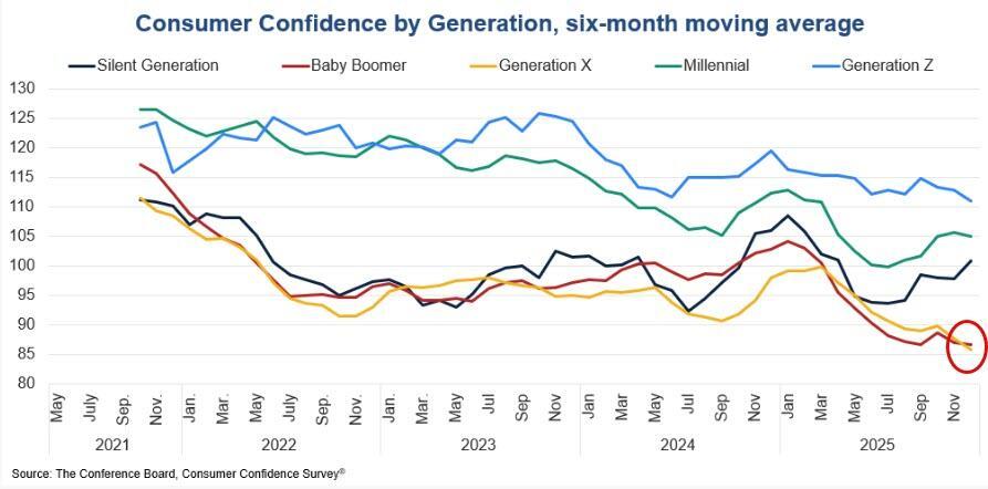 Boomers & Gen X Send Conference Board Consumer Confidence Tumbling In December