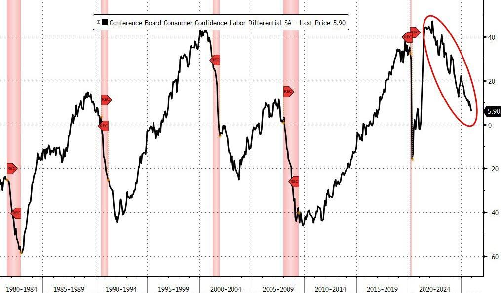 Under the hood, The Conference Board survey shows the trend of a weaker labor market continued to accelerate...