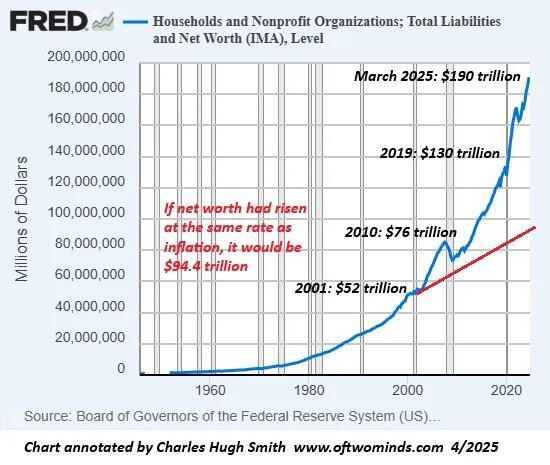 Unlike others in my generation, I attribute only a modest percentage of my net worth to frugality and working hard, as the majority of whatever "wealth" I own is the direct result of the hyper-financialization credit-asset bubble that's been inflated since 2007.
