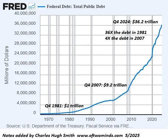 Those of us who run businesses / are self-employed don't have the luxury of not dealing with financial realities. Triage comes with every enterprise. We need a national discussion of triage that doesn't immediately degrade into denial or histrionics. And no, AI and stablecoins aren't going to make all this go away, any more than hoping the Central Bank of Mars will emerge to give us a 36 trillion-quatloo bailout.