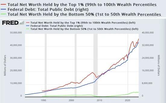 It's interesting how debt and the net worth of the top 1% have soared in tandem. Could it be that soaring debt-asset bubbles have benefited the top 1% far more than the debt bubble has benefited the bottom 50%? And if that's the case, then what does this suggest in terms of saving the ship from sinking?