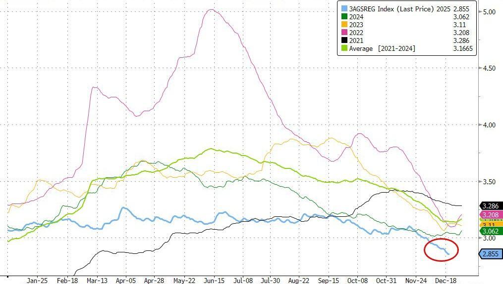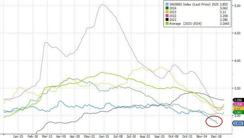 “Christmas is often when gas prices settle near the lowest levels of the year, and 2025 is no exception,” said Patrick De Haan, head of petroleum analysis at GasBuddy.