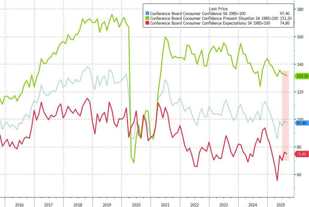 "Meanwhile," Guichard points out that "pessimism about future job availability inched up and optimism about future income faded slightly. However, these were partly offset by stronger expectations for future business conditions.”