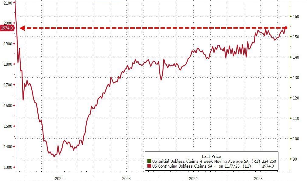 However, while initial claims remain solid, continuing jobless claims drifted higher to 1.974 million Americans - the highest level since October 2021...