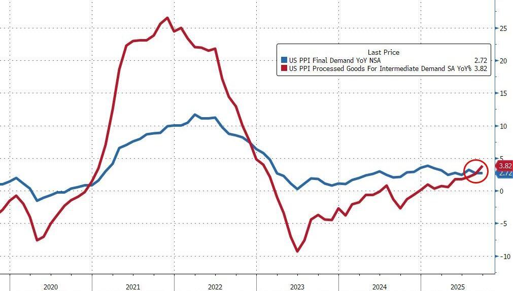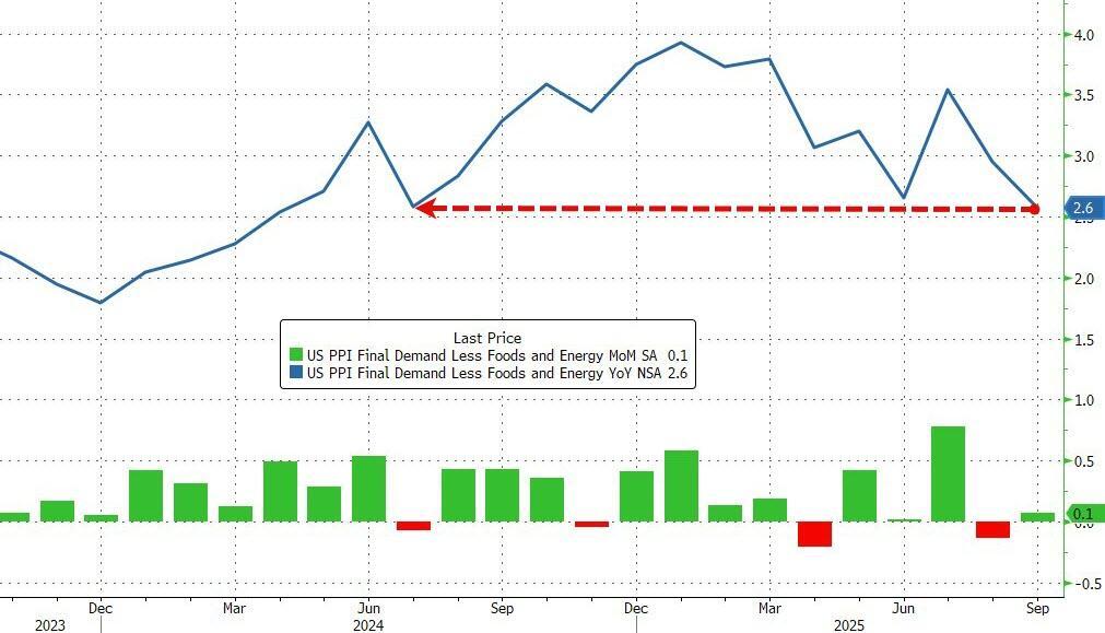 Core PPI (Ex Food & Energy) rose just 0.1% MoM, bringing Core PPI YoY down to +2.6%...