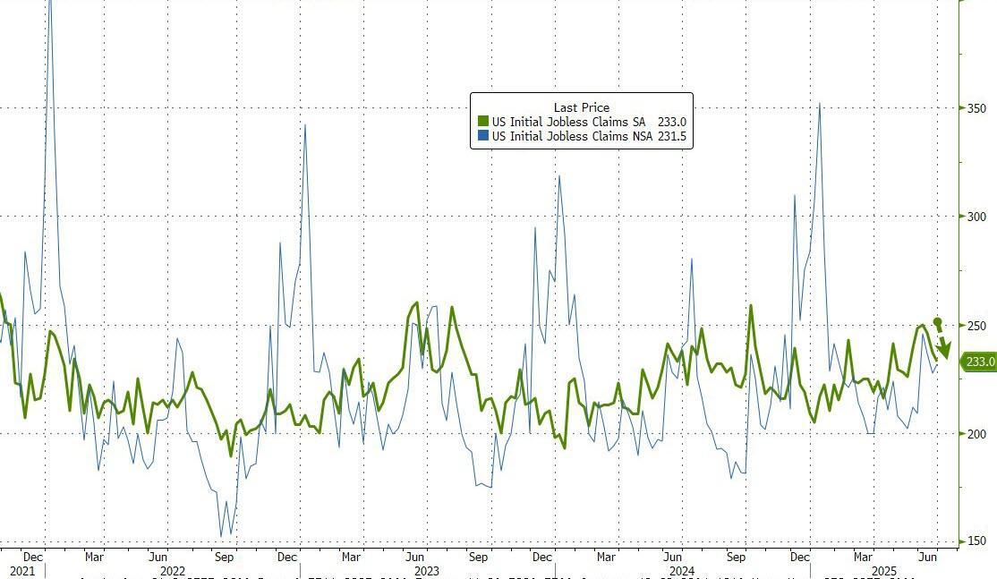 Initial claims dropped from 237k to 233k last week, rolling over from 9 month highs...