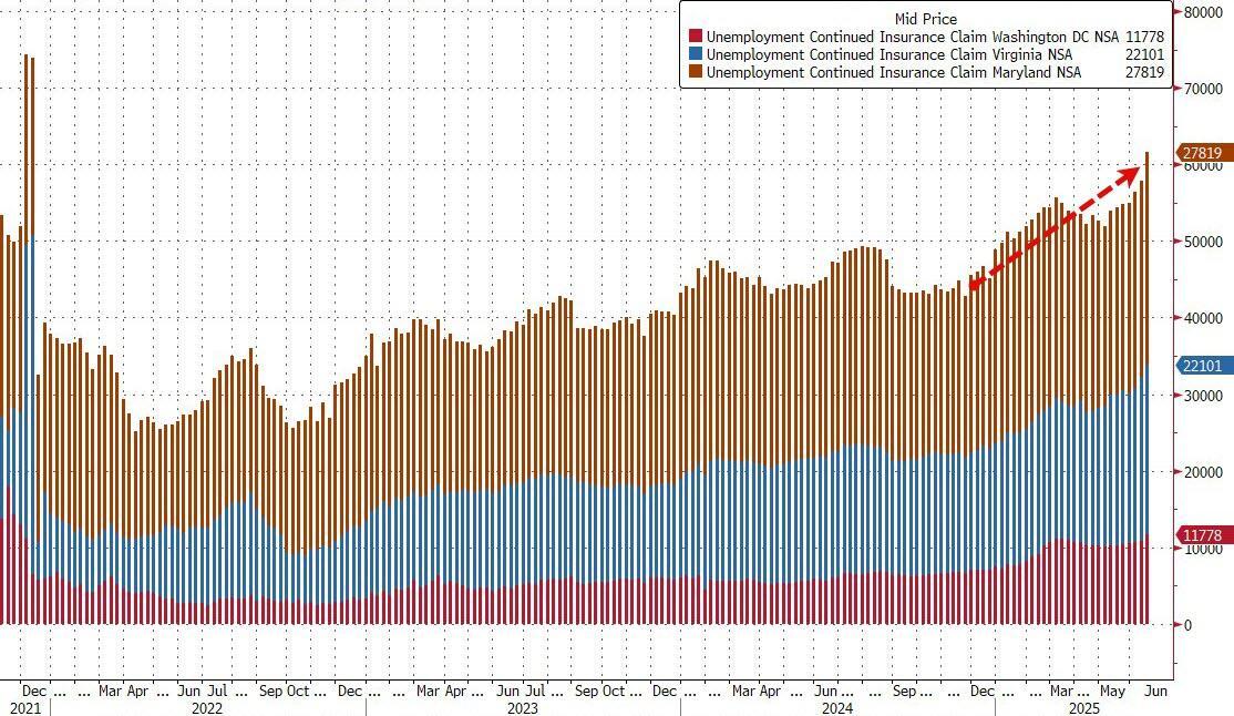 The 'Deep TriState' dominated the rise in continuing claims, moving to its highest since Dec 2021