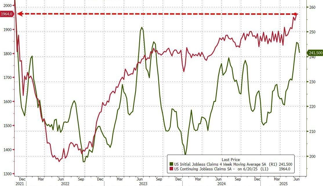 Continuing jobless claims were flat at 1.964mm Americans - the highest since Nov 2021...
