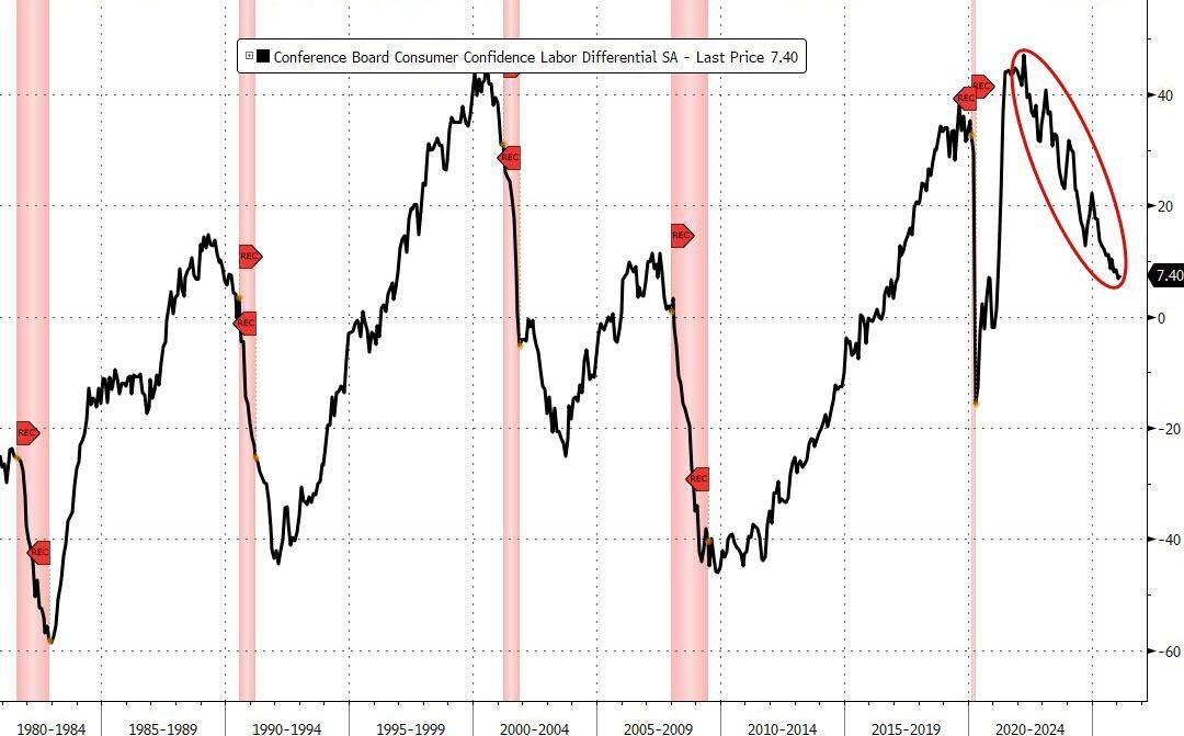 Finally, under the hood, The Conference Board survey shows the trend of a weaker labor market continued to accelerate...