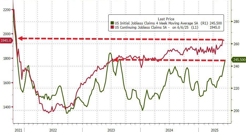 Continuing jobless claims remain above 1.9 million Americans (and the trend of initial claims keeps rising)...