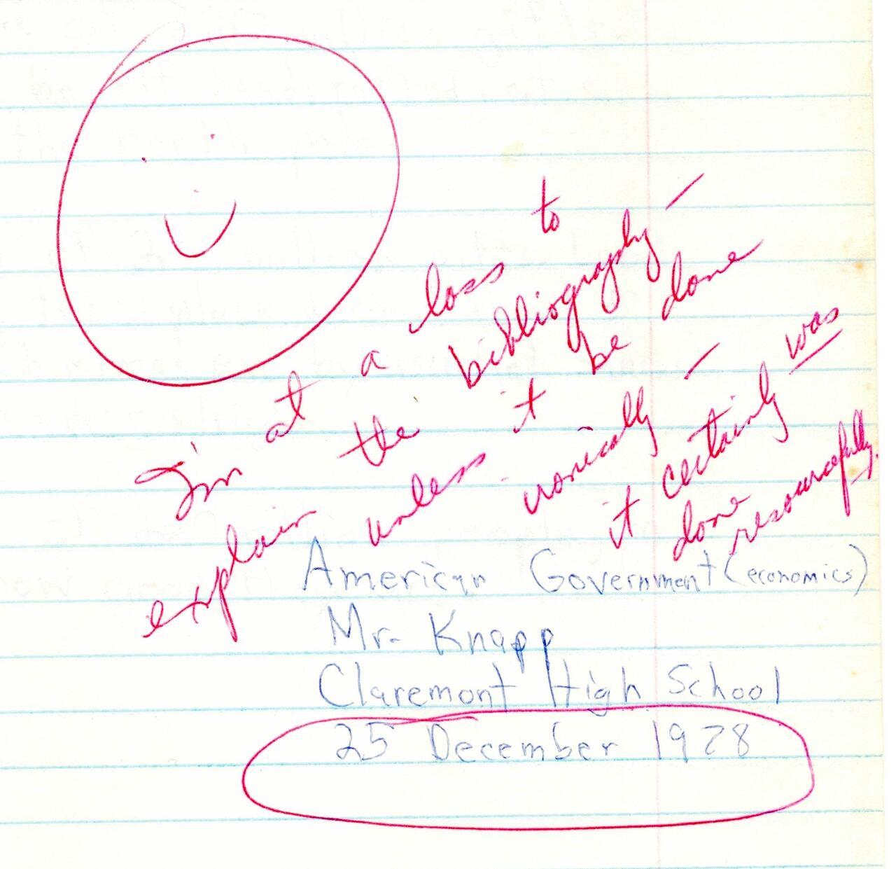 As you read the transcription of my paper below, bear in mind that I wrote it a few years before I learned anything about libertarianism or about Austrian economics. Still, I was under the influence of the libertarian zeitgeist prevailing in California at the time. With inflation raging out of control while traditional statist authority figures in both major parties were lamely touting yet more business-as-usual interventions and tax increases, Californians had had enough by then. In November of 1978, they revolted against property taxes (led by the legendary anti-tax gadfly Howard Jarvis, passing the Proposition 13 voter initiative to amend the state constitution) and even gave a libertarian candidate for governor 5.5 percent of the vote. Reading this work of mine, I’m sure you’ll agree that there was a definite proto-Austro-libertarian influence at work.