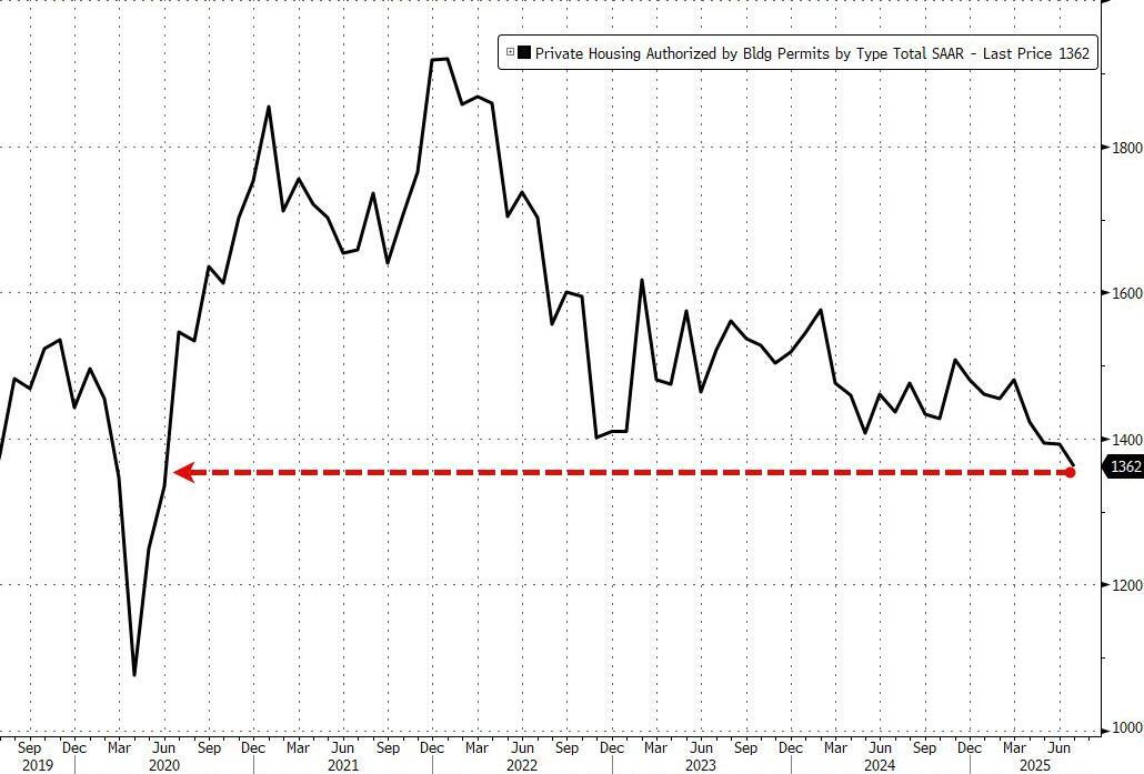 Looking ahead, things don't seem too rosy as this morning saw revised building permits data hitting fresh post-COVID-lockdown lows...