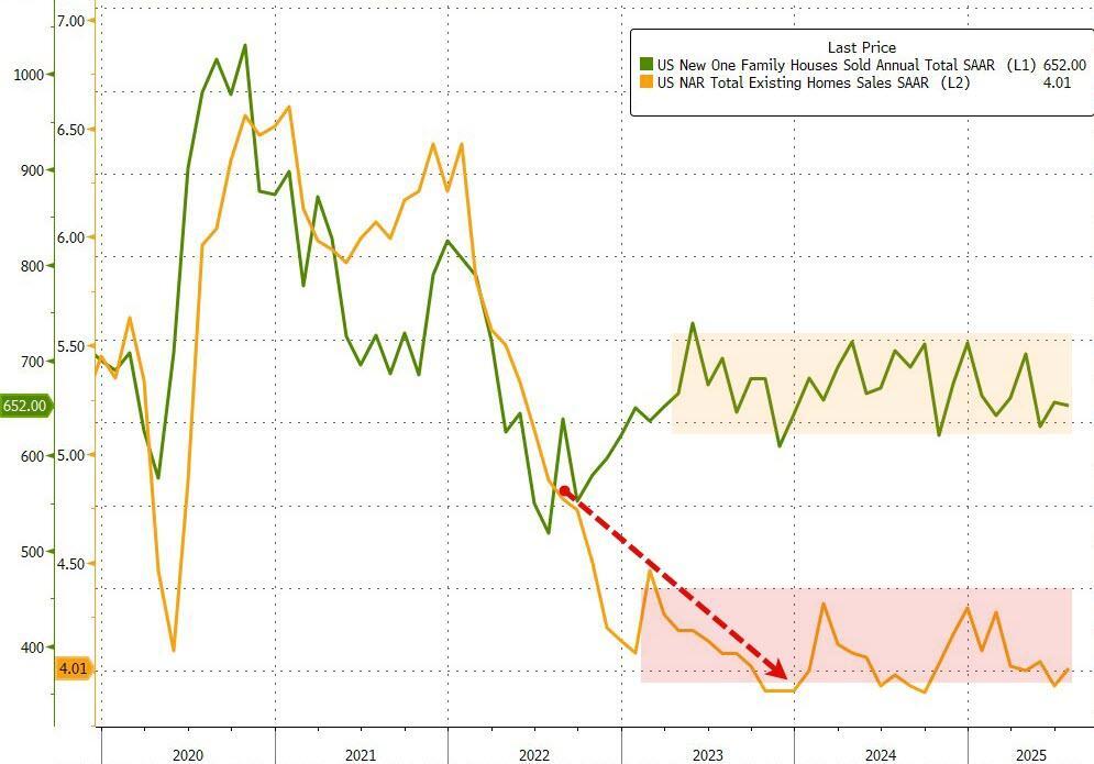 The subsidy offered by new home builders clearly separates them from existing home sale volumes but neither shows any signs of life.