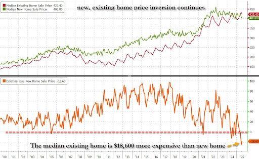 The inversion of new versus existing home prices continues to widen...
