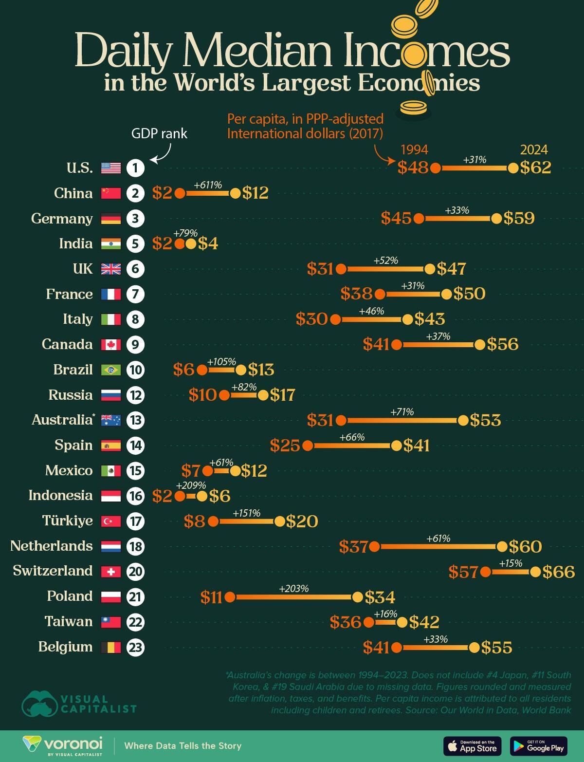 How Daily Incomes Have Changed In Top Economies Over The Past 30 Years
