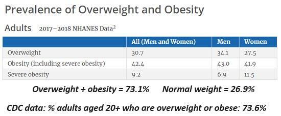 Only a quarter of the adult population is normal (i.e. healthy) weight, reflecting an unhealthy lifestyle of processed foods and inactivity.