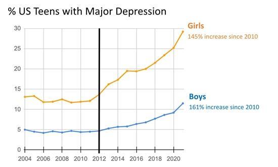 As for mental health, consider teen depression rates. Teen suicide rates have also risen. There is no way to interpret this as healthy.