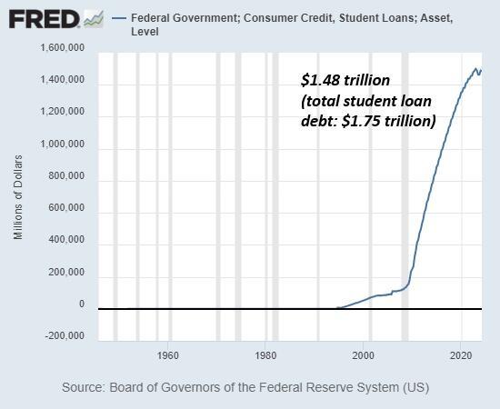 Turning to the social and economic sources of stability, security and opportunity, consider the astounding rise of student loan debt, as attending college / university went from being affordable to requiring lifetime debt serfdom.