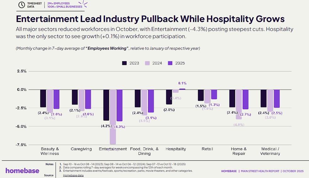 Notably, homebase reports that the Entertainment industry is seeing the biggest layoffs...