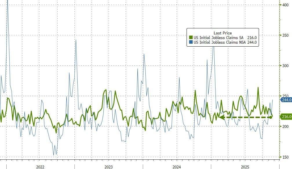 The number of Americans filing for jobless benefits for the first time tumbled to just 216k last week - the lowest since April