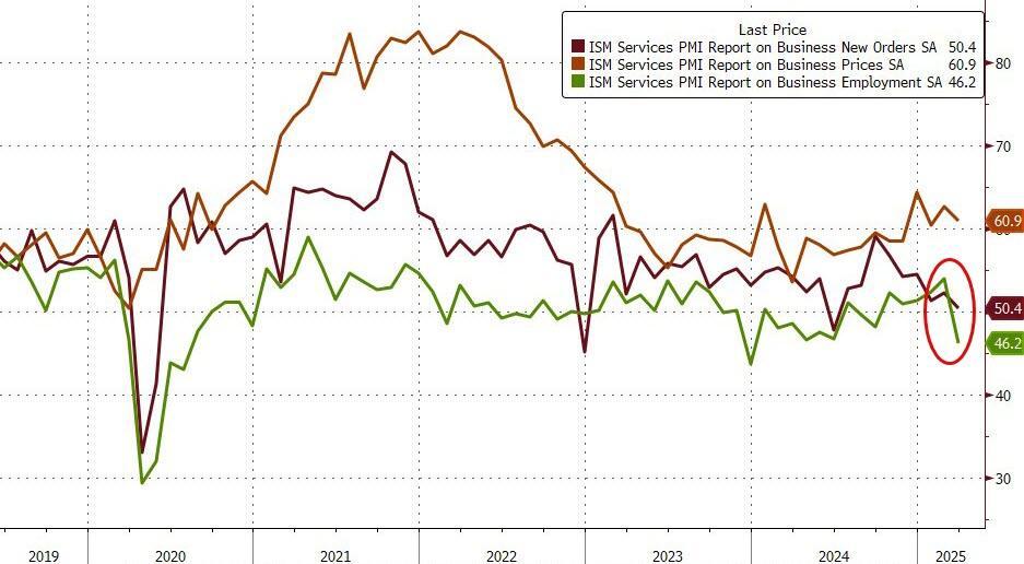ISM Services PMI tumbled from 53.5 to 50.8 - its lowest since June 2024