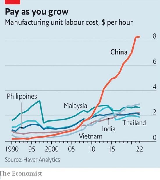 Globally, the forces pushing costs higher (i.e. inflation) cannot be reversed. Consider this chart of labor costs in China. As labor costs skyrocket, higher costs must be passed on to consumers.
