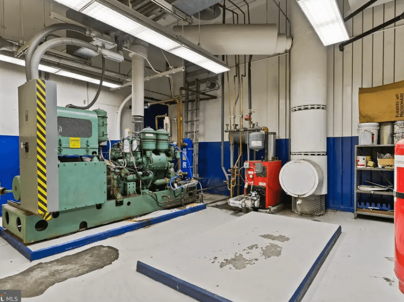Mechanical systems include multiple heat pumps utilizing a closed-loop well water system for heating and cooling, originally engineered to operate continuously and efficiently. Environmental systems incorporate multi-stage air filtration and water purification components, designed for long-duration occupancy. The facility also includes specialized mechanical rooms, utility areas, and hardened support spaces typical of secure infrastructure installations.