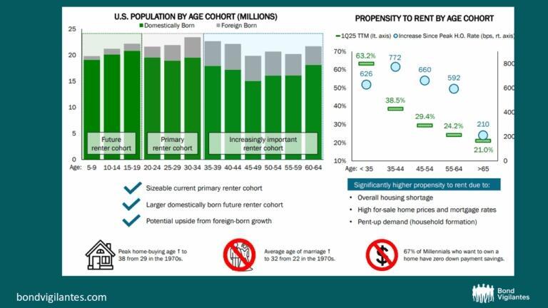 Supply/demand imbalances of housing stock in the US, exacerbated by an ageing population clinging to homes that they either own outright or with extremely low mortgage rates, combined with a large pullback from developers following the 2008 financial crisis, continue to ripple through the economy and the fixed income universe in unexpected and meaningful ways.