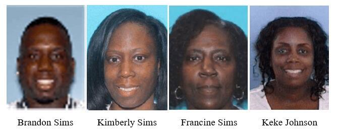 The fraudsters, Brandon Eugene Sims, 40; Kimberly Mable Sims, 39; Francine Sims Super, 64; and Keke Komeko Johnson, 53, operated Life Touch, LLC, a now permanently shut down fake substance abuse facility and 1st Choice Healthcare Services, a urine drug screening company.