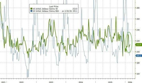 Initial jobless claims hovered near multi-year lows at 213k last week...