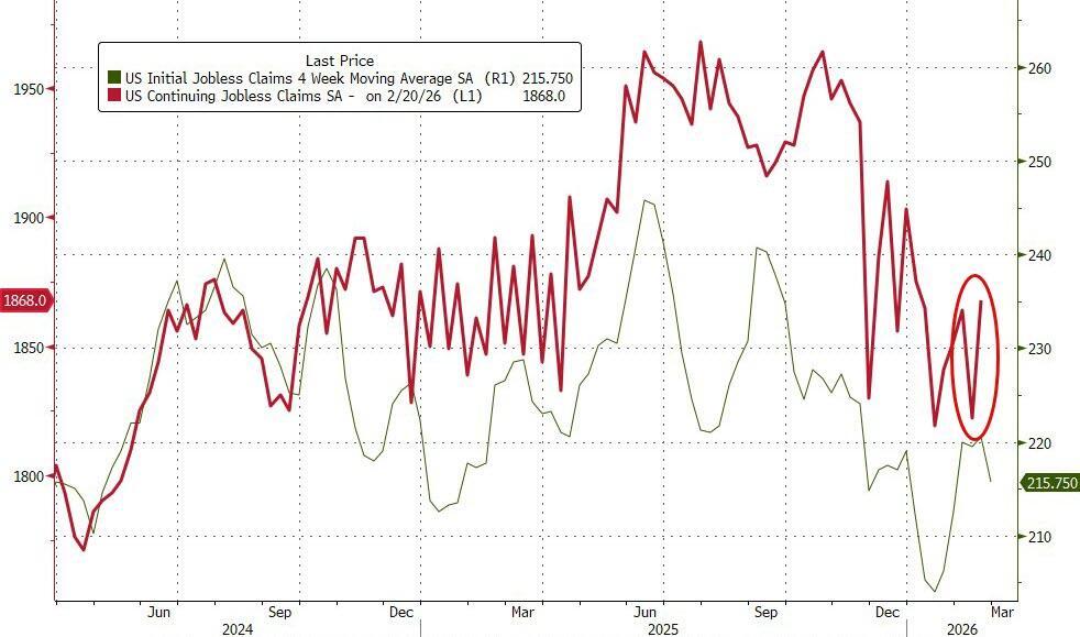However, continuing jobless claims picked up to 1.864 million Americans - the highest of the year...