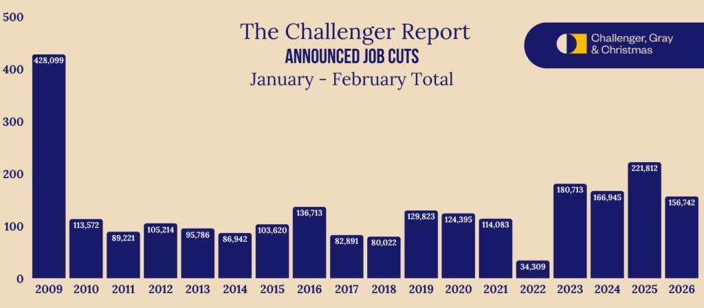 “February’s dip is a nice reprieve from the elevated job cut plans to start the year. With U.S. involvement in a growing war in Iran, the end of Q1 may bring more layoff plans as companies tighten belts amid uncertainty and higher costs,” said Andy Challenger, workplace expert and chief revenue officer for Challenger, Gray & Christmas.