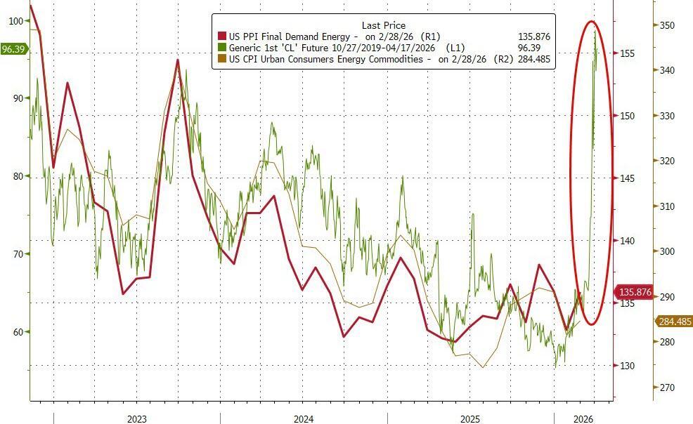 ...and if oil prices remain elevated, PPI (and CPI) are about to become a whole lot hotter...