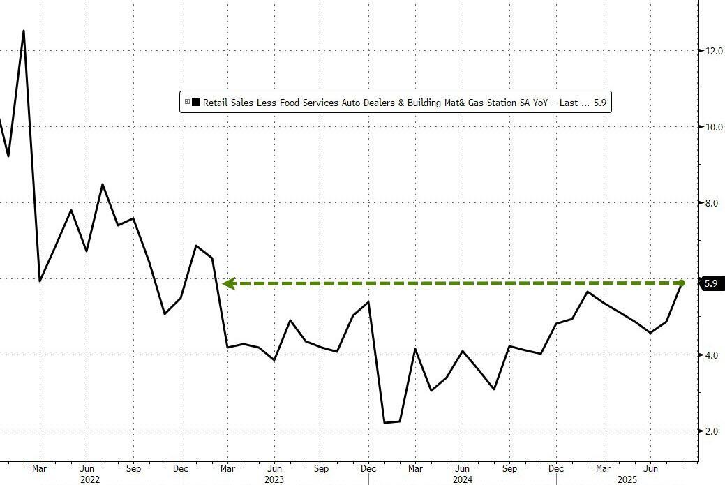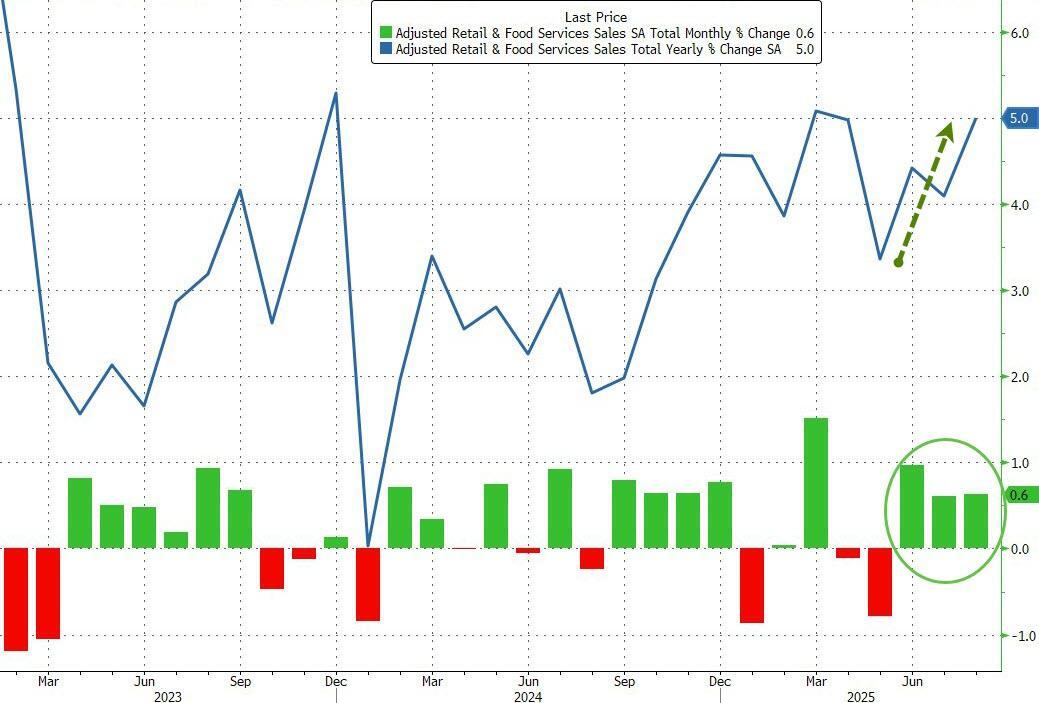 The most notable retail sales cohort - the Control Group - which feeds directly into the GDP calculation, surged 0.7% MoM (well above the 0.4% MoM expected) and up 5.9% YoY. Of course, this is nominal, but still a strong signal for the consumer.